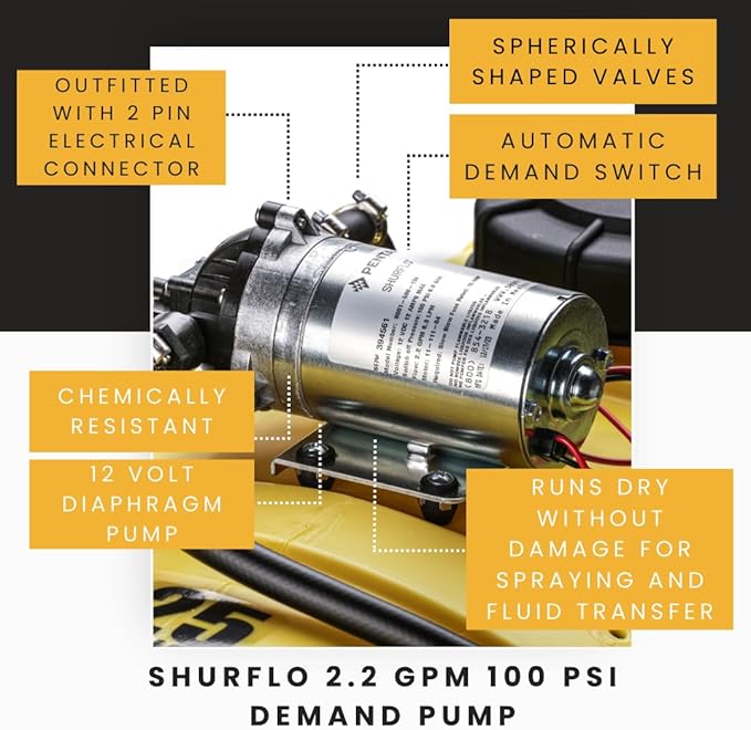 - SPRAY WITH POWER: SHFLO 12V pump delivers 2.2 GPM at 100 PSI for steady, high-pressure performance—perfect for residential and light commercial spraying tasks