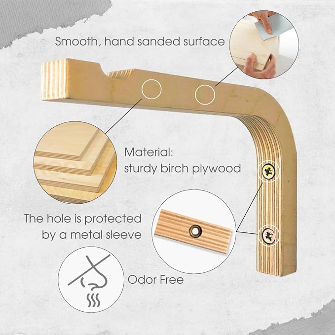2-Piece Set of Plant Hooks for Wall 6 inch - Mounted Wooden Plant Hook - Indoor and Outdoor Bracket Plant Hanger for Planters, Lanterns, Bird Feeders, Patio Decorations (Natural)