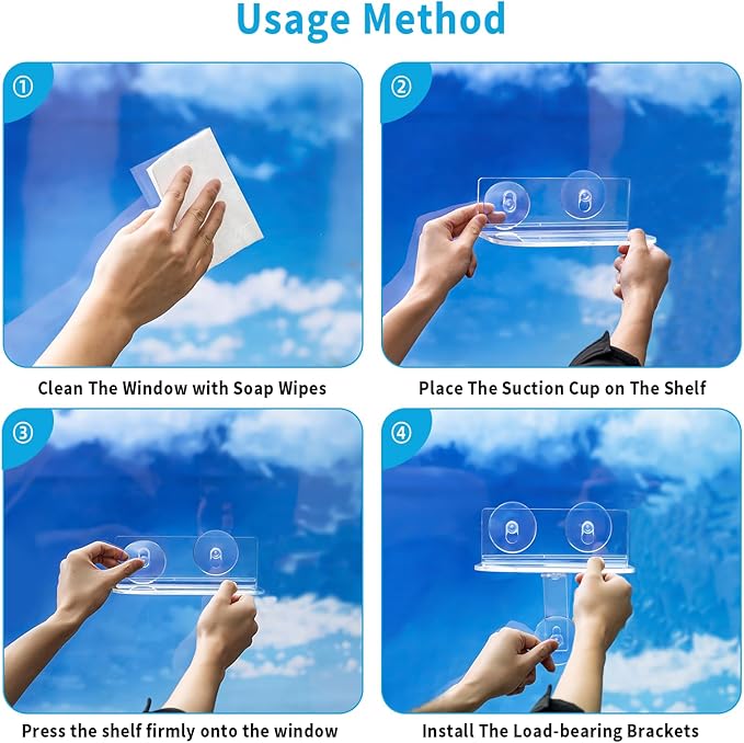 - MORE STRONG CONSTRUCTIONοΌOur window plant shelf is made of 5mm thick, high-quality transparent acrylic and minimalist design, keep your window view while safely fixing objects. And each of our window sill suction cup planters comes with a load bearing bracket for greater support and stability