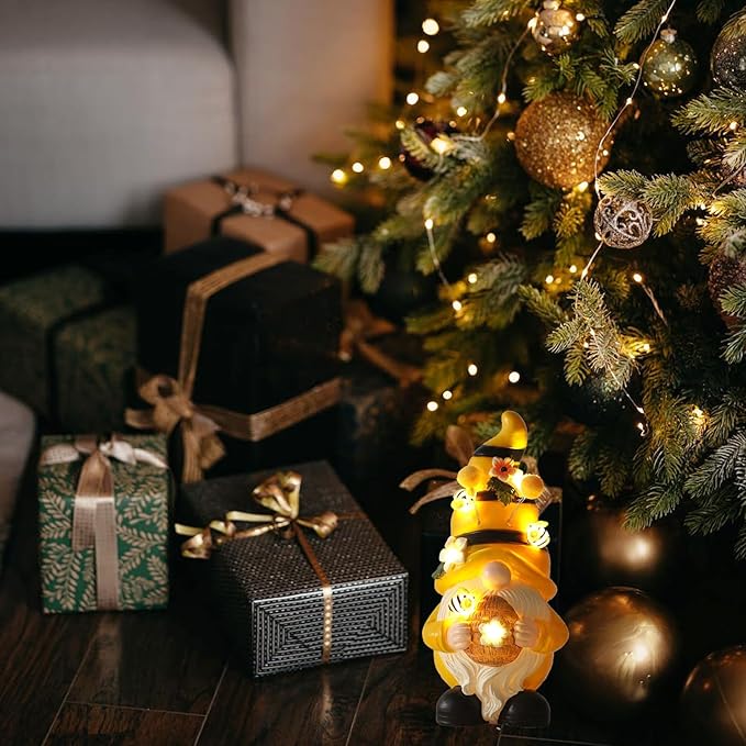 - 【Attractive Design for Gnome Statue】Hopeful colorful bee garden gnomes, hand-held solar lights with outdoor waterproof decorations for sunflowers and lifelike bees. When night fell, the bee glowed and appeared quiet and cheerful.This lovely garden sculpture is ideal for outdoor patio decorations.Create a cozy atmosphere in your outdoor garden decor.The light will cast a soft and warm glow on the lovely statue
