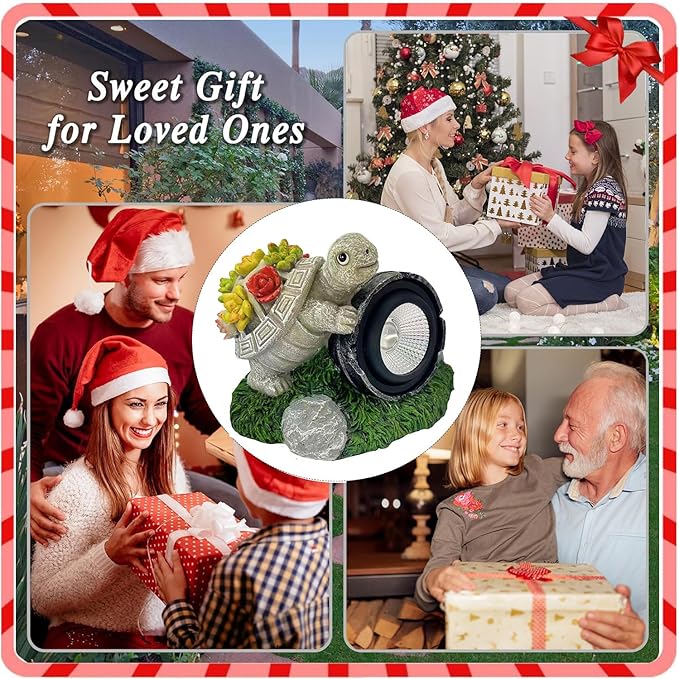 - [Great Garden Decor]: The succulent turtle on the grass naturally blends with your yard, the unique design of outdoor garden landscape lights adds to the wonderful atmosphere of your garden, and the spotlights will automatically illuminate your flowers, trees, or the way home when night falls. Whether it is landscape decoration during the day or outdoor lighting at night, it is undoubtedly a great garden decoration craft.