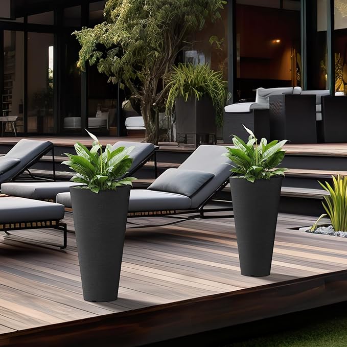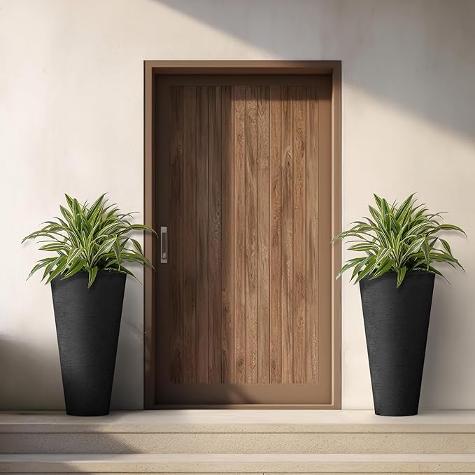 - Minimalist Chic - Elevate your space with these tall and wide planters, embodying sleek lines and a contemporary black finishβa defining trend in modern landscape design. The textured surface introduces an artistic touch to your garden, patio, office, living room, or front door area.