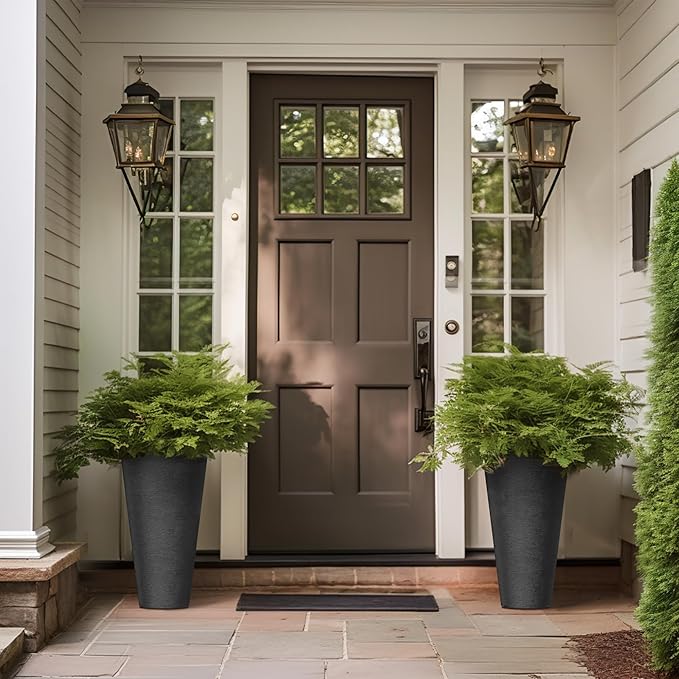 Kante Tall Round Planter Set of 2, 18" H Large Decorative Planter Pots for Outdoor Indoor Garden Patio Front Porch (Black)