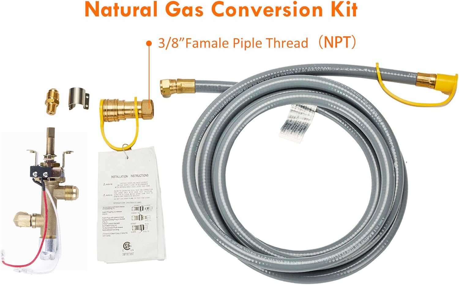 - Natural Gas Conversion Kit - Includes a natural gas conversion kit to convert the propane version to natural gas version, which will be shipped separately. We shipped the package in two separate boxes, It is possible that one package will arrive before the other.