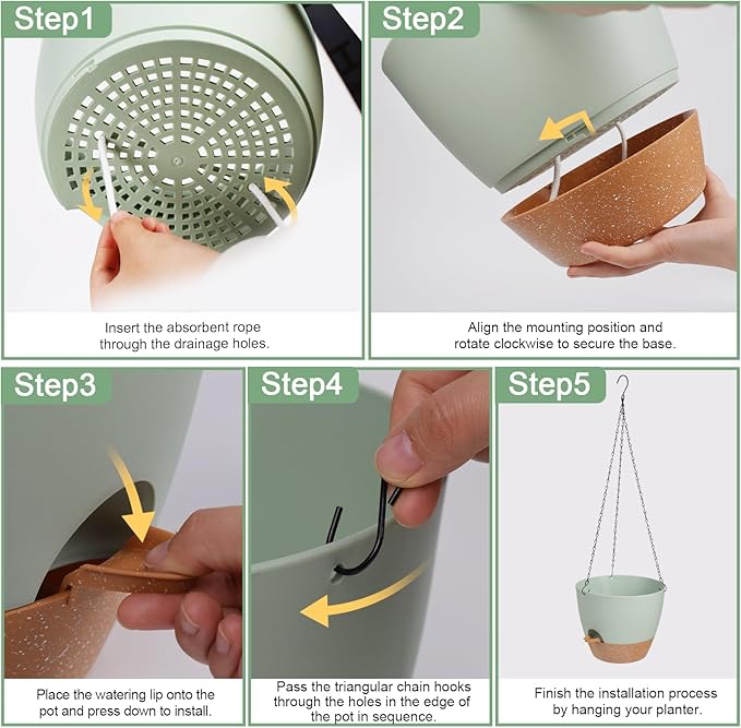 - Self-Watering Planter: Water storage up to 7-10 days. Our hanging pots for plants indoor come equipped with a removable tray that doubles as a water reservoir, ensuring your plants are watered for up to two weeks while you are away.