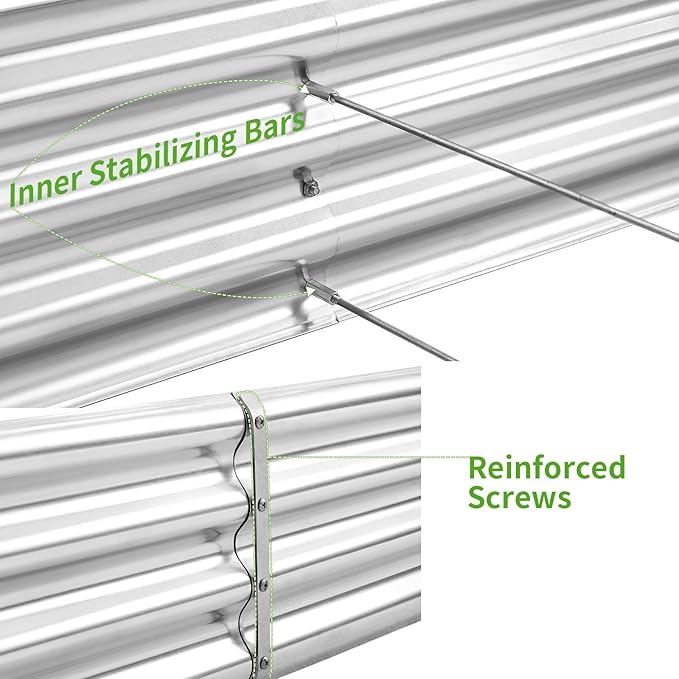 - Stable and Solid Construction: Double card frames on the two sides of the sheet make the raised garden kits more durable and stable, and 4 reinforcing rods make the whole raised garden bed more stable. Never worry about its distortion or collapse and it presents a much more beautiful design.