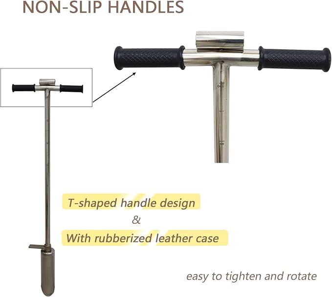- 【WIDE APPLICATION】Soil probes are the most basic soil sampling tool for agronomists, geologists, agricultural consultants, farmers and other soil scientists. Used to collect small diameter samples at or near the ground surface