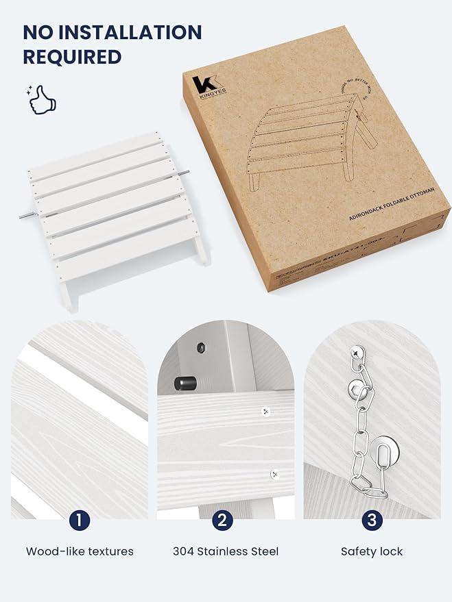 - [Instant Comfort]: No assembly required for the KINGYES Adirondack Footstool. Unbox and enjoy immediate relaxation with this portable and convenient footrest, designed for seamless integration into your outdoor living space.