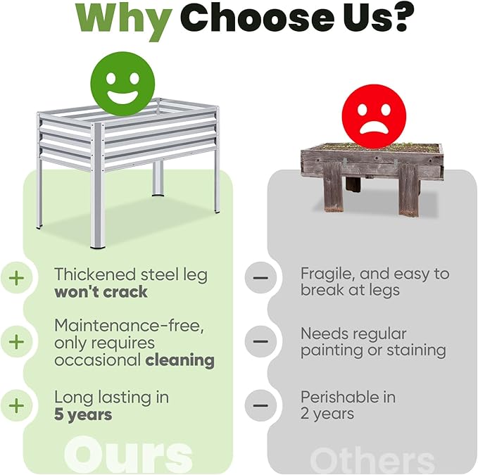 - 【Height: 30", Ergonomic Design】The galvanized raised garden bed stands at a comfortable height of 30 inches, eliminating the need to bend or kneel and sparing your back and knees from strain. It makes a perfect gift for relatives, friends, and anyone passionate about gardening.