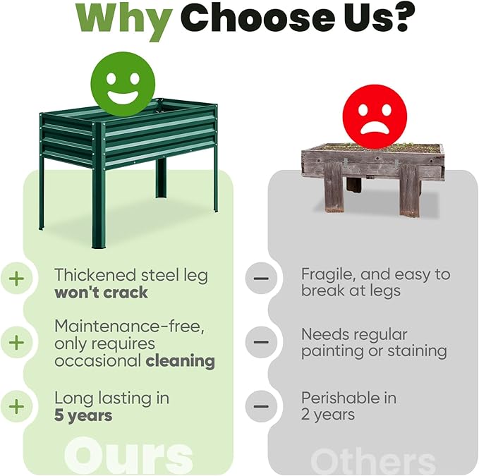 - 【Height: 30", Ergonomic Design】The galvanized raised garden bed stands at a comfortable height of 30 inches, eliminating the need to bend or kneel and sparing your back and knees from strain. It makes a perfect gift for relatives, friends, and anyone passionate about gardening.