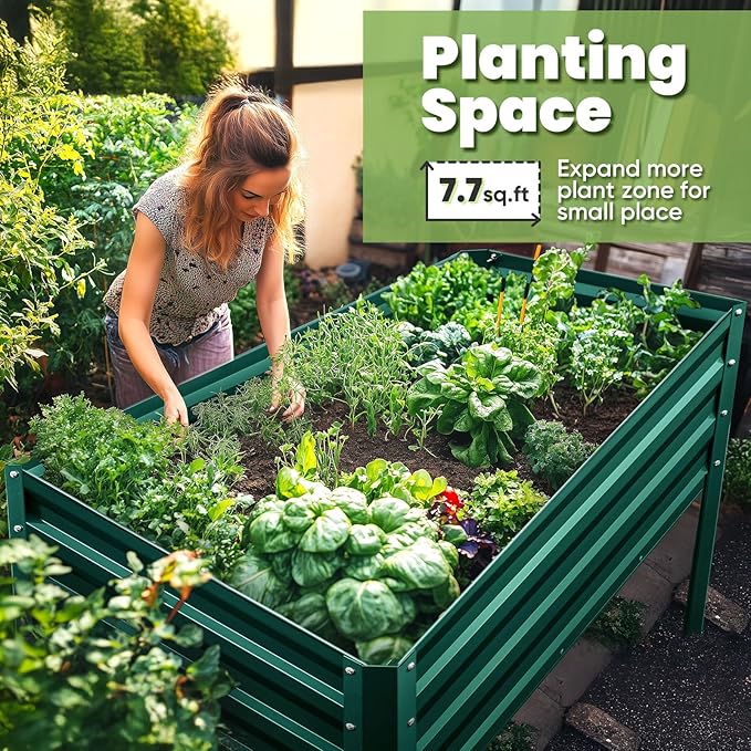 - 【Sturdy & Durable, Capacity: 400 lbs】Our galvanized steel planter raised bed is rust-resistant, sturdy, and can support up to 400 lbs. More durable than wooden raised garden bed kit, it ensures a longer lifespan without the worry of cracking or warping.