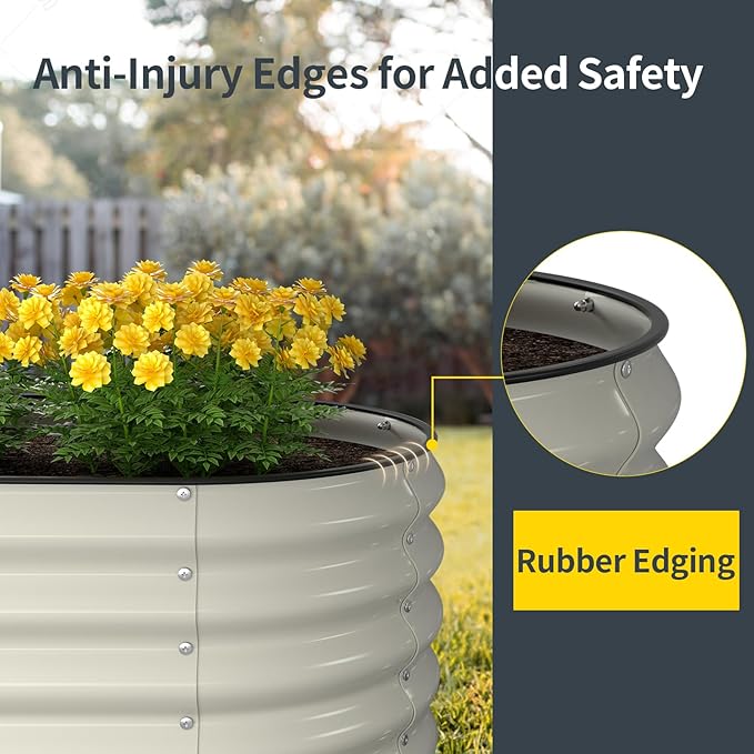 - Safe Rubber Edge:The top edge of the metal raised garden bed comes with a black rubber sealing edge for reinforcement as well as to prevent injury.The 18in depth reduces the stress of bending and the extra large growing space is perfect for most plants.