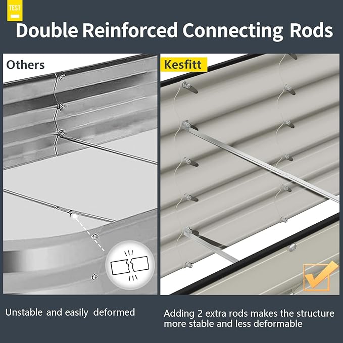- Thickened Material Super Stable:Galvanized garden bed made of double-layered galvanized sheet with a rust-resistant coating up to 1.2 mm in the thickest overlap, nuts and bolts made of rust-resistant stainless steel.