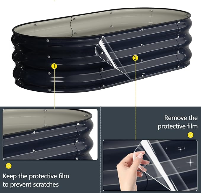 - Double Thickness Super Stability: The thickness of the planter box is 0.6 mm, and the thickest overlap of galvanized sheets can reach 1.2 mm.Adding screw fastening edge at the interface. Oval shape that won't deform allows it to hold a large amount of soil.