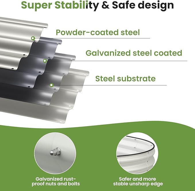 - Safety design: We offer a rubble seal to protected top edge of garden from being sharp. Environmentally friendly paint is used, which does not pollute the soil and provides a healthy growth environment for plants.