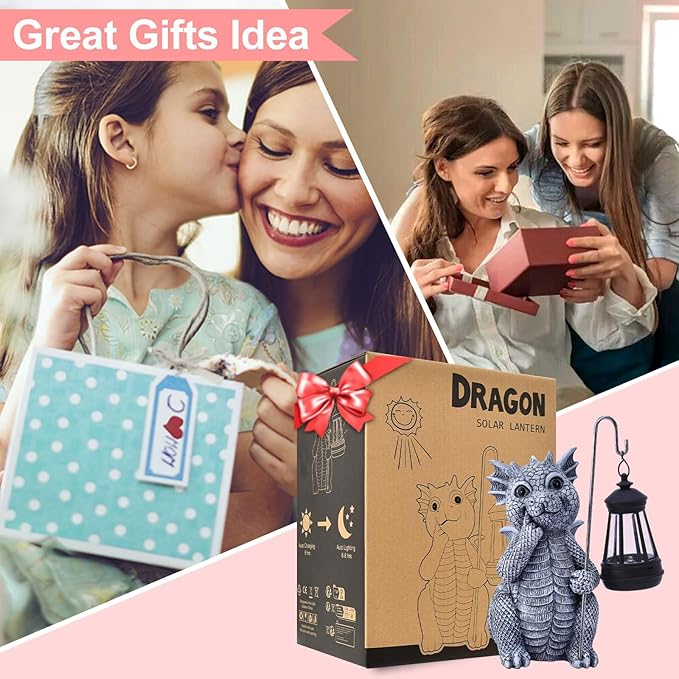 Garden Decor Solar Statues for Mom Grandma Birthdays for Women Sister Wife Lady - Front Patio Balcony Yard Art Lawn Ornaments Porch Outdoor Outside Decorations (Dragon)