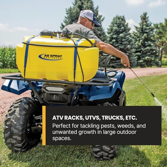 - EASY TO TRANSPORT: Compact tank fits securely on ATVs, UTVs, or pickup beds. Ideal for residential, rural, or commercial use where mobile spraying is a necessity