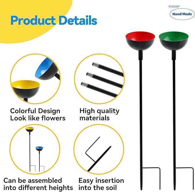 - 【Easy to Install】The set has 4 cups(Yellow & Blue & Green & Red), 25 inches tall, Which can be installed easily by pushing them into the ground to the desired height and form.
