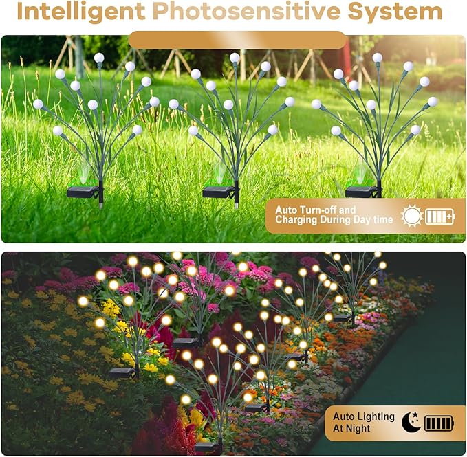 - 2024 Brand New Upgraded Firefly Solar Lights - Designed with a plant simulation appearance, all green color except lamp beads, blend naturally with the environment.
