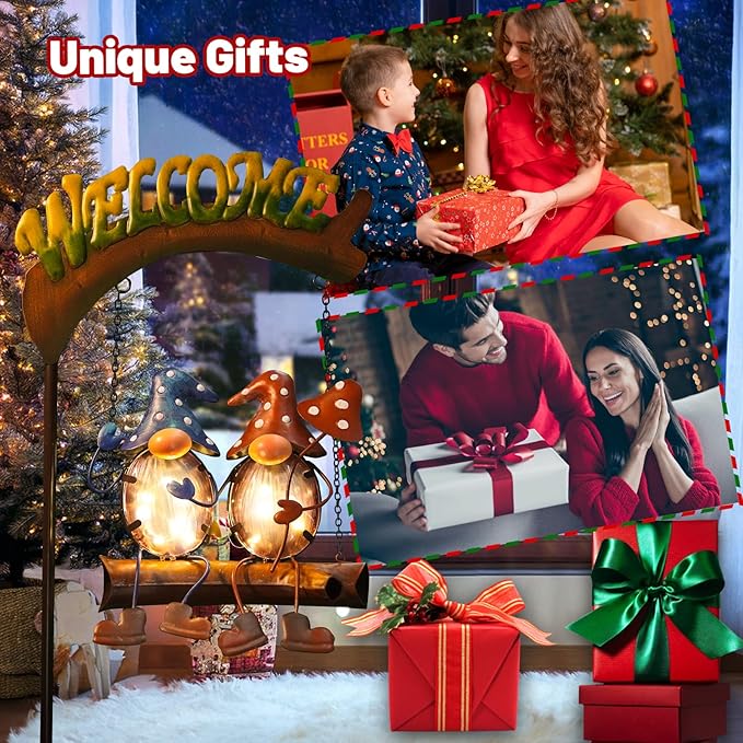 - 【Gnome Patio Decor】The unique and original fairy design, with the gnome partner holding the mushroom playing on the swing with the word "Welcome", makes your garden full of vitality and fun
