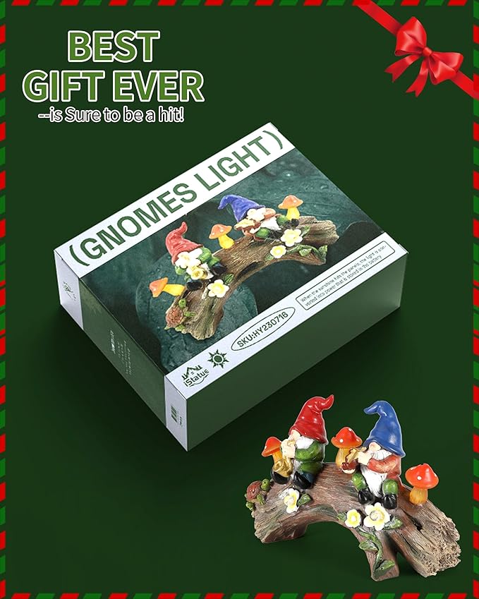 • ☀️Solar Powered Magical Glow - As darkness envelops the garden, the gnomes’ instruments emit a soft, enchanting glow. Imagine the melodies echoing through the moonlit night!