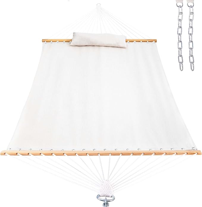 - LAZY DAZE HAMMOCKS: Lazy Daze Hammocks are large enough to accommodate 2 people. The hammock bed size is 77 inches x 55 inches. A 12-feet hammock with 2 steel chain links. Double hammock with wood spreader bar, 55 inches durable hardwood spreader bar made of FSC-Certified wood, itโs designed to safely support a maximum capacity of 450 pounds