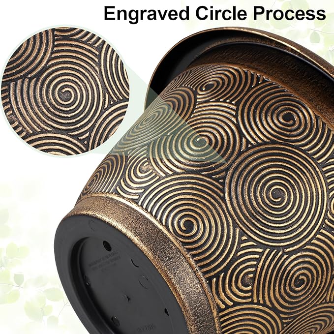 - 【Modern Circle Pattern】10 inch planter pots designed with 3D circle pattern add a lively and modern feeling, perfect for plants and flowers indoor outdoor, brings out a modern stylish visual representation for any home/office decor without any sense of violation.
