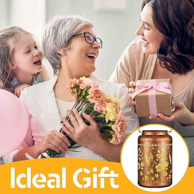 - Graceful Decorative Design:The retro appearance, with gold copper color and hollow out metal veneer, the solar outdoor lanterns casts bright and warm light in darkness, accompanied by gorgeous and graceful hummingbird patterns, adding a beautiful atmosphere to the surrounding environment.