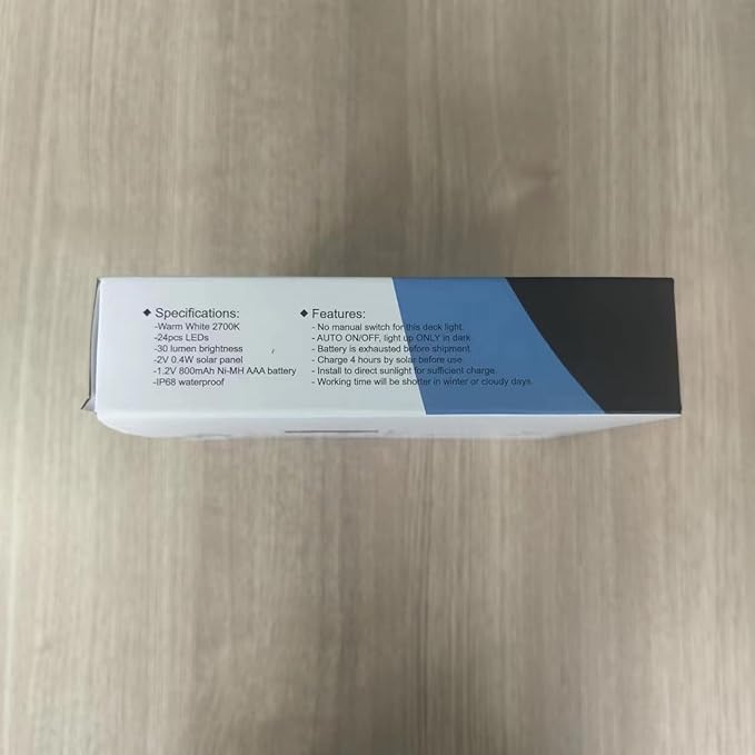 - 【Large Solar Panel and Long Lighting Time】 The solar deck lights with super powerful and big solar charging panel guarantee for quick charge. And built-in 800mAh large capacity battery let 4-6 hours full charge by strong sunlight can light on up to 16 hours.