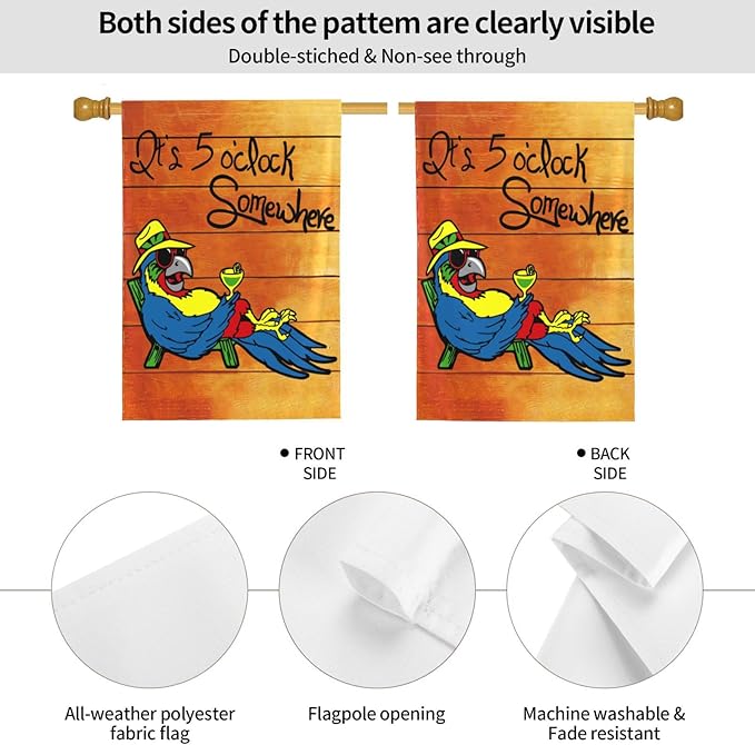 - Material: This 5 Oclock Somwhere Garden Flag Is Made Of Polyester, Ensuring Its Durability And Lightweight Design.The Designs And Words Are Double Sided Which Can Be Clearly Viewed From Both Sides.