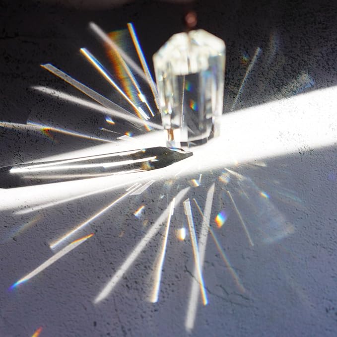 - Rainbow Maker Prisms: 2pcs crystal light catcher are made by hand, size:4.7*1.1in(12*2.8cm),NW:95g/pc. These 120mm large crystal suncatchers will create stunning rainbows when sunlight passes through them, adding a magical touch to any space
