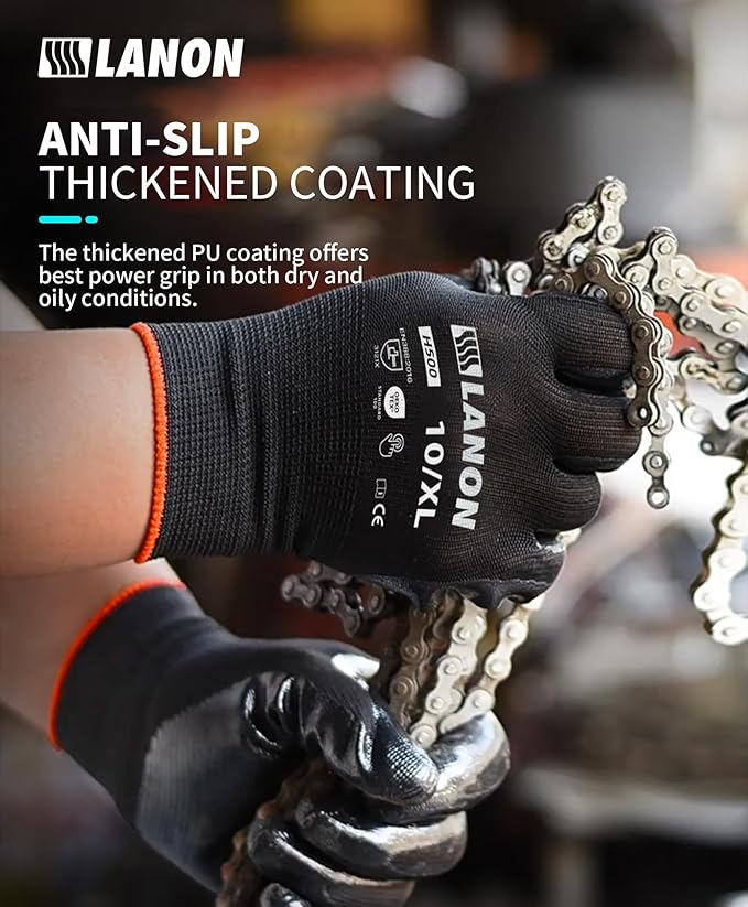 - Next-level Performance - LANON work gloves are certificated by CE, with Standards EN 388:2016, EN 420, and meet CA Prop.65 regulations for phthalates. We guarantee your 100% satisfaction with our products. If you are not satisfied with our products, please feel free to contact us and we will provide free returns or size exchanges.