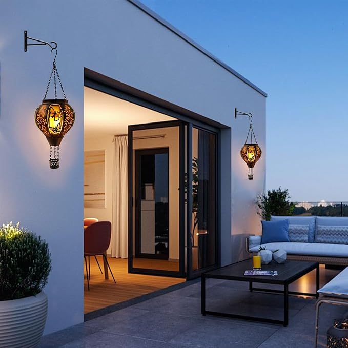 - 【Solar Powered Lantern】Hot air balloon solar lanterns hanging charging by solar energy is not only energy-saving and environmentally friendly,but also saves money. Make sure to turn on the power switch before charging. The solar lamp has a built-in light sensor that automatically lights up at night and recharges during the day.