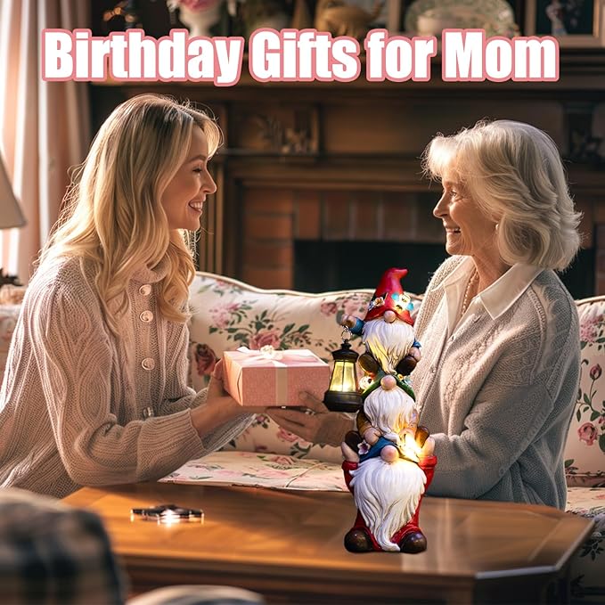 Garden Gnome Statue with Solar Lights Large Garden Sculptures Funny Triple Gnome Outdoor Patio Lawn Yard Balcony Garden Home Decor Gifts for Women Mom 12 in Spring Summer Gnomes Outdoor