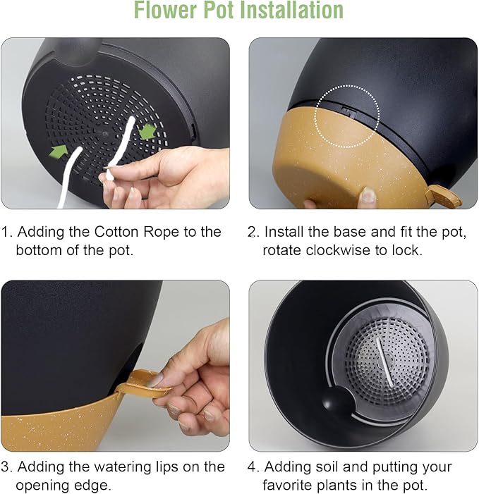 - 【Self Watering Design】 Self watering pots is includes a water reservoir at the bottom of the planter. This flower pots automatically supplies water to your plants as needed by a cotton rope, reducing the frequency of watering and ensuring your plants never go thirsty. The reservoir design also helps maintain a consistent moisture level, fostering optimal growth conditions.