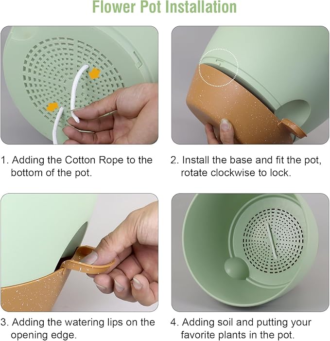 - 【Self Watering Design】 Self watering pots is includes a water reservoir at the bottom of the planter. This flower pots automatically supplies water to your plants as needed by a cotton rope, reducing the frequency of watering and ensuring your plants never go thirsty. The reservoir design also helps maintain a consistent moisture level, fostering optimal growth conditions.