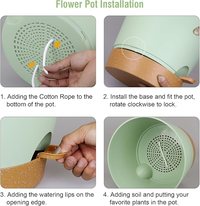- 【Self-Watering Design】 Self-watering pots is includes a water reservoir at the bottom of the planter. This flower pots automatically supplies water to your plants as needed by a cotton rope, reducing the frequency of watering and ensuring your plants never go thirsty. The reservoir design also helps maintain a consistent moisture level, fostering optimal growth conditions.
