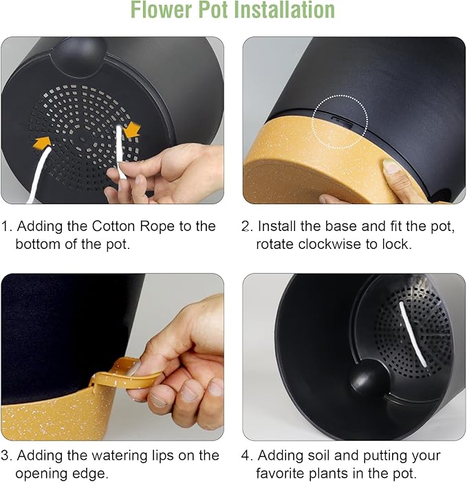 - 【Self-Watering Design】 Self-watering pots is includes a water reservoir at the bottom of the planter. This flower pots automatically supplies water to your plants as needed by a cotton rope, reducing the frequency of watering and ensuring your plants never go thirsty. The reservoir design also helps maintain a consistent moisture level, fostering optimal growth conditions.
