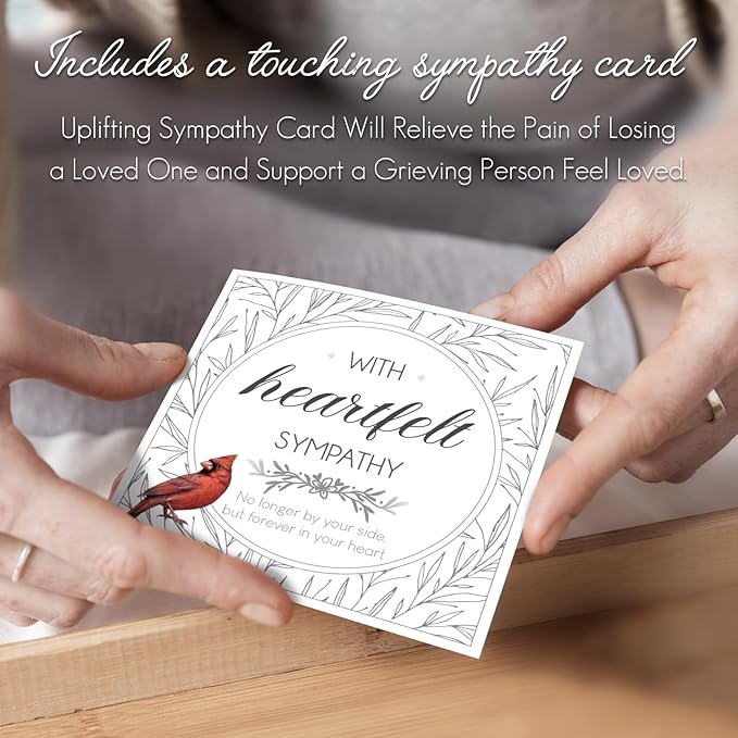 - Arrives in a gift box comes with beautifully designed gift card bearing a heartfelt message.Express the sympathy and give the fitting gift for anyone that needs a warm comforts and support who loss of mom, grandma, sister, wife, aunt or any female friend or family member.This is ideal bereavement keepsake,anniversary of Passing,remembrance gift,or memorial gift.