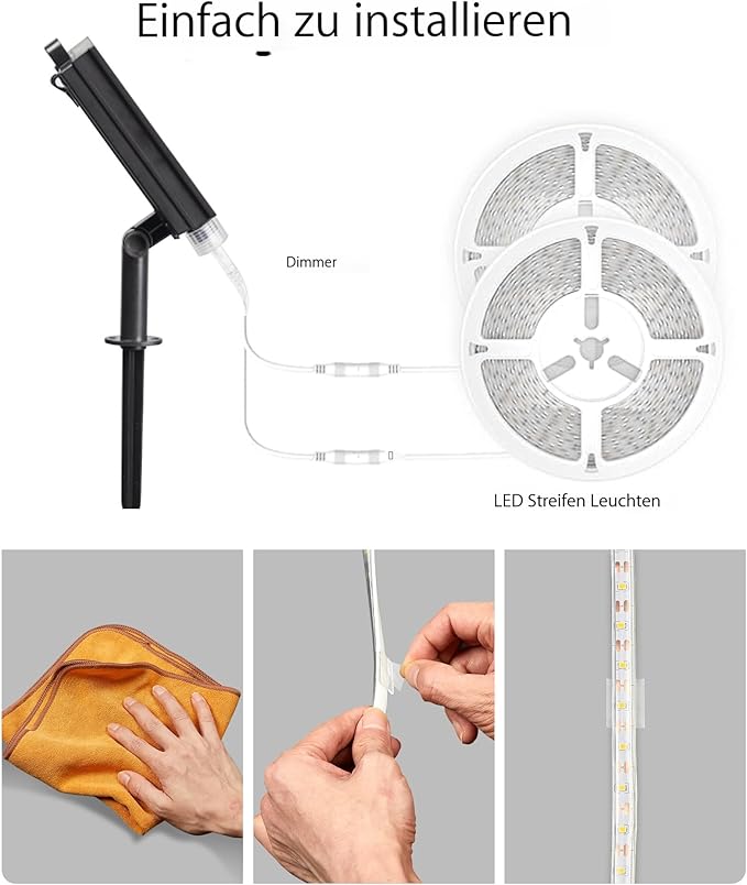- Easy to Install: The solar led strip lights outdoor come with a self-adhesive tape on the back, making it easy to install and operate. Additionally, the included clips allow you to conveniently fix the waterproof patio lights to your garden fence