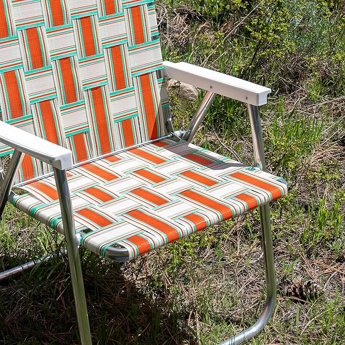- Lawn Chair USA outdoor chairs have a lightweight aluminum frame and durable webbed fabric.