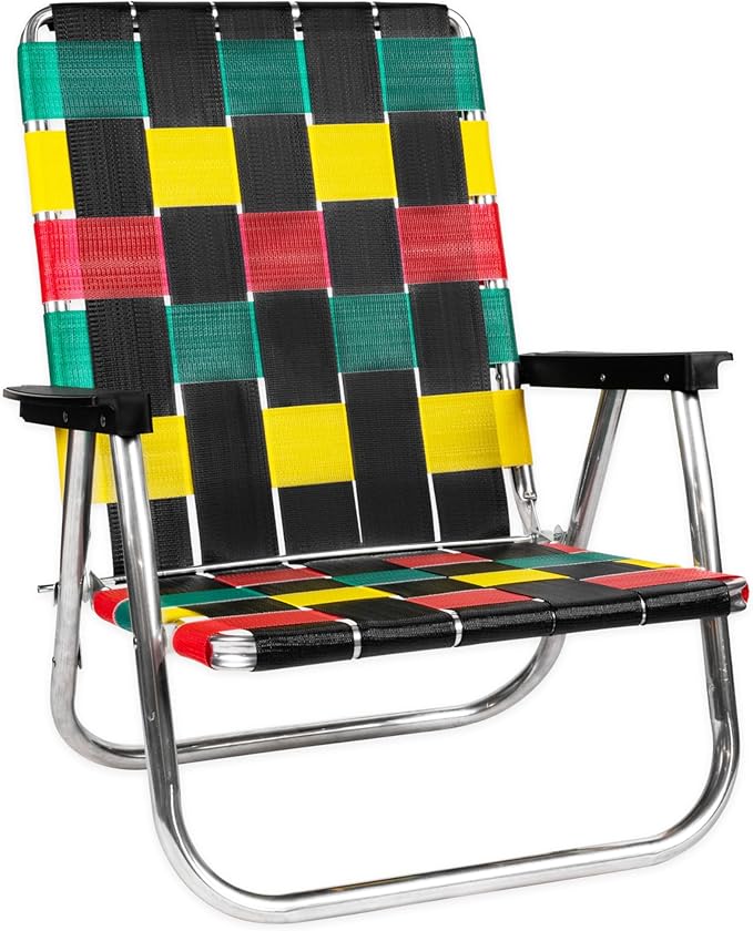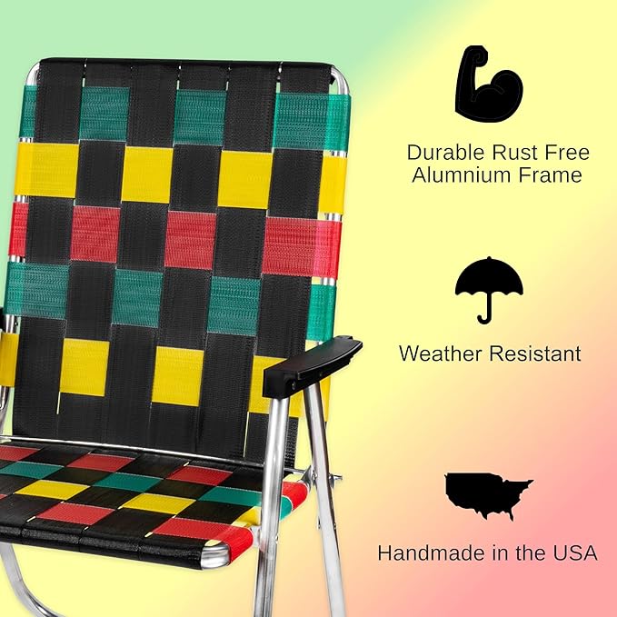 Lawn Chair USA Folding Aluminum Outdoor Patio Lawn Chair | Heavy-Duty Webbed Chairs for Camping, Sports, Beach, Yard & Tailgating | Lightweight Portable | High Back Beach Chair - Rasta Flag