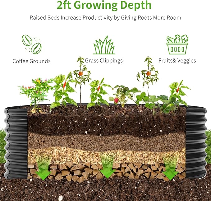 - Large space: 96'(L) x 48 "(W) x 24" (H) metal raised garden bed will provide enough space to grow various vegetables, fruits, flowers.