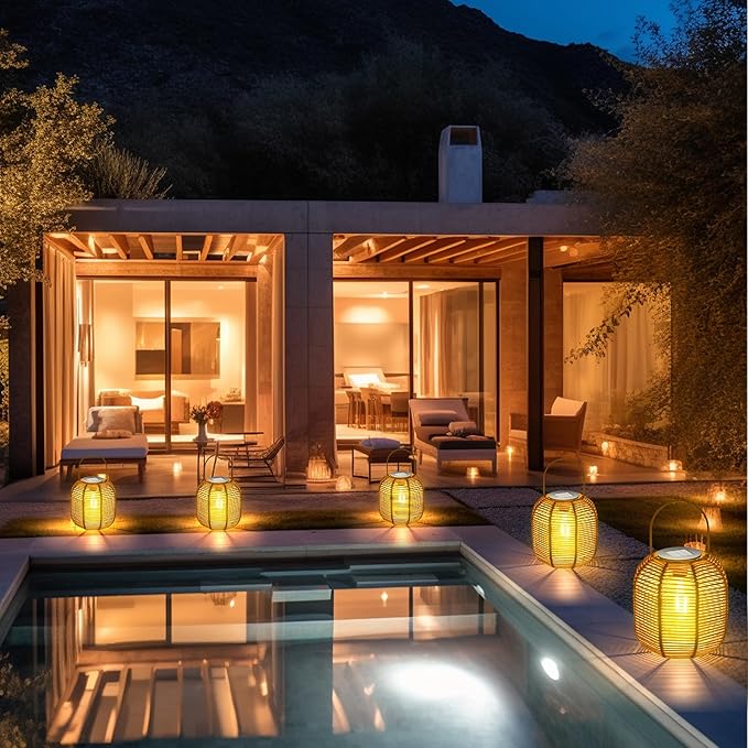 - 【Wide Application】: Our outdoor solar lantern can be used as a nighttime decorative light, ideal for garden and front porch decoration, balcony and deck decoration, as well as outdoor table decoration, pool decoration, flowerbed decoration, lawn decoration, fence decoration, landscape path decoration, sidewalk decoration, restaurant garden decoration, or hanging on porches, patios, trees, yards, and pathways. It creates the perfect atmosphere for your entire family.