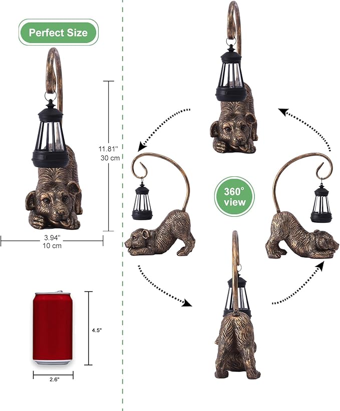 - Water Proof : The outdoor solar light is made of high quality resin, hand painted and coated with UV protection, it is durable and can withstand all weather conditions. Suitable for outdoor use, with a waterproof rating of IP44, there is no need to worry about rain;snow;frost or sleet