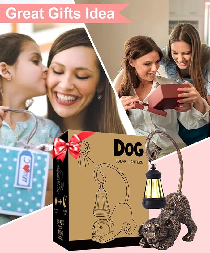Garden Decor with Solar Lantern:Statues for Outdoor Decorations Yard Art Figurine for Patio Balcony Porch Lawn Ornaments-Gifts for Mom Grandma