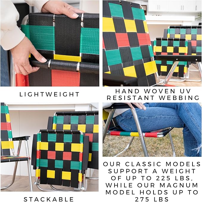 Lawn Chair USA Folding Aluminum Outdoor Patio Lawn Chair | Heavy-Duty Webbed Chairs for Camping, Sports, Beach, Yard & Tailgating | Lightweight Portable | Classic - Charleston Green with Green Arms