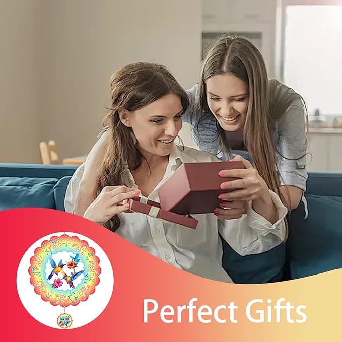 Hummingbirds Metal Wind Spinners Hummingbird Gifts for Mom Women Grandma,12inch Hanging Wind Spinner for Outdoor&Indoor Decor Wind Kinetic Ornament for Yard Garden Decoration