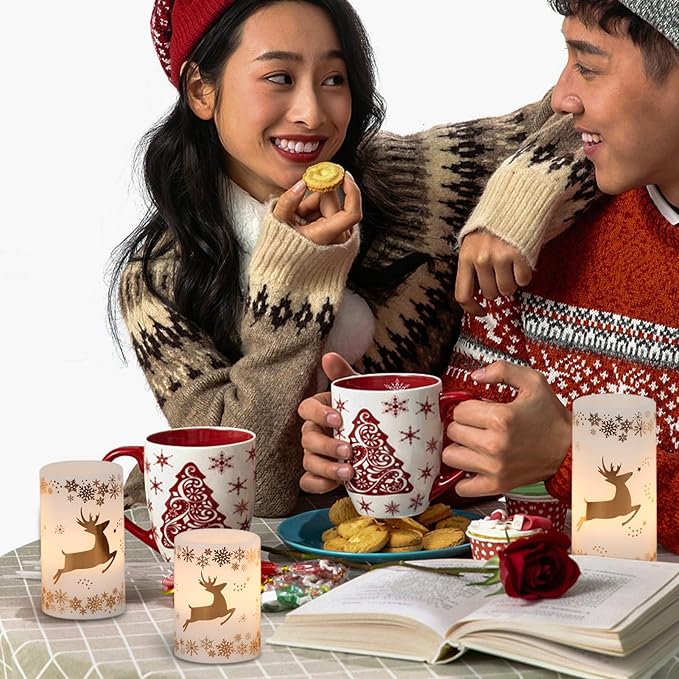- Safe Christmas Candles: Flameless candles no risks of real fire, dripping wax and smoking, creating a cozy ambiance with peace of mind. Turn on the candles when you go out or sleep, it will automatically turn off, no fire hazards