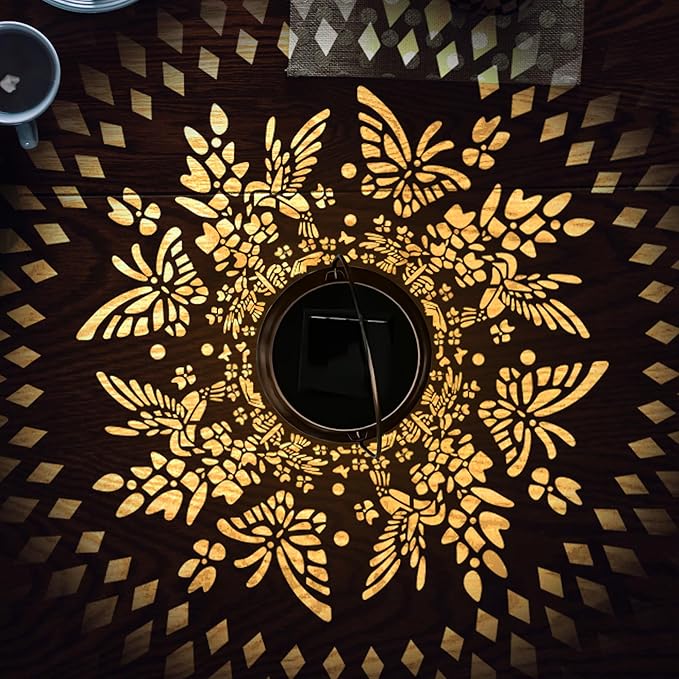 - [Durable & Waterproof] - The outdoor butterfly lantern is made of sturdy+thickened metal and durable, IP65 waterproof rating design, don't worry about rain, solar garden lights can work on rainy days. Solar power supply, no electricity charge, no power cord required, easy to use.